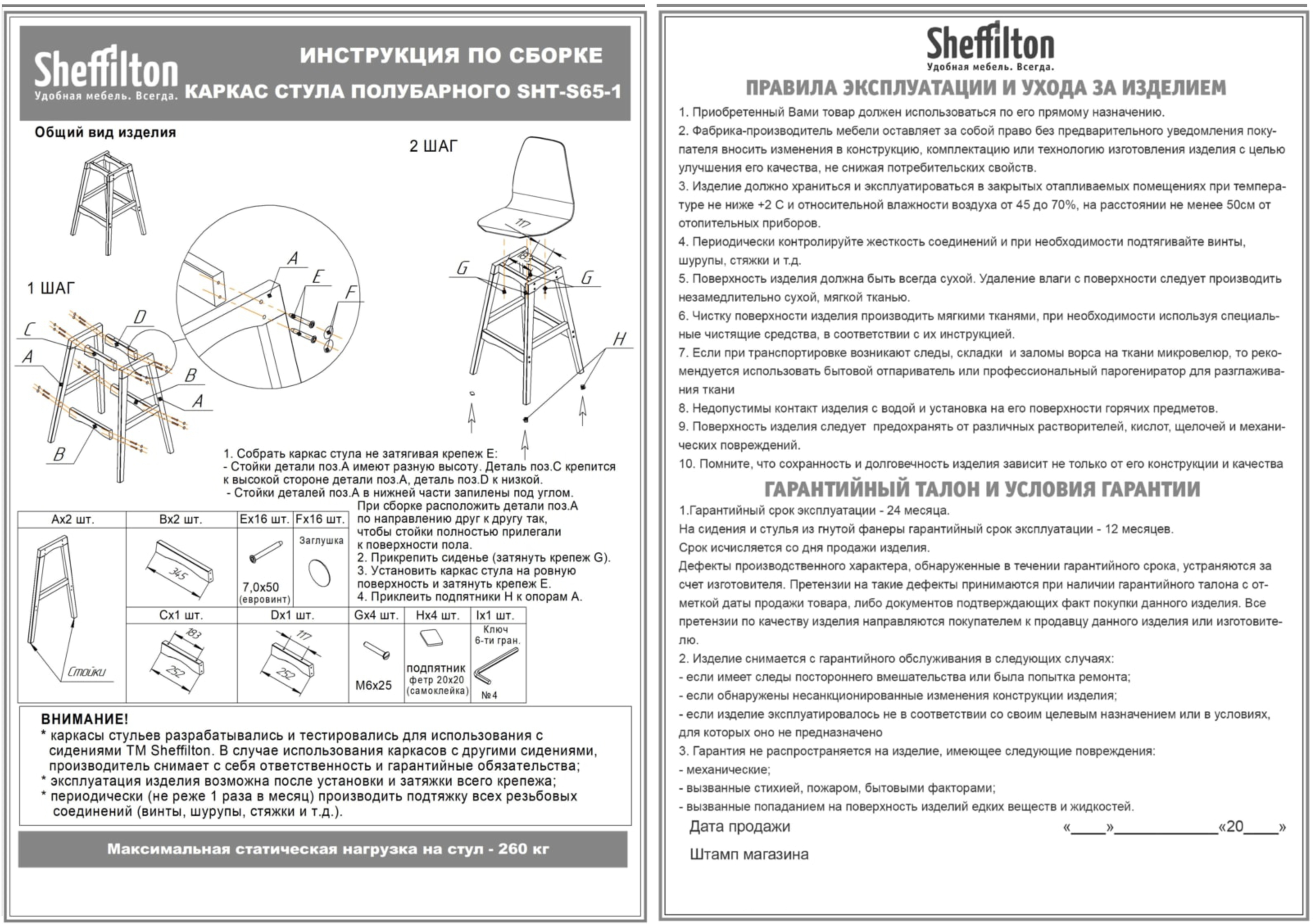 Каркас стула полубарного Sheffilton SHT-S65-1 артикул КС-65-1 венге