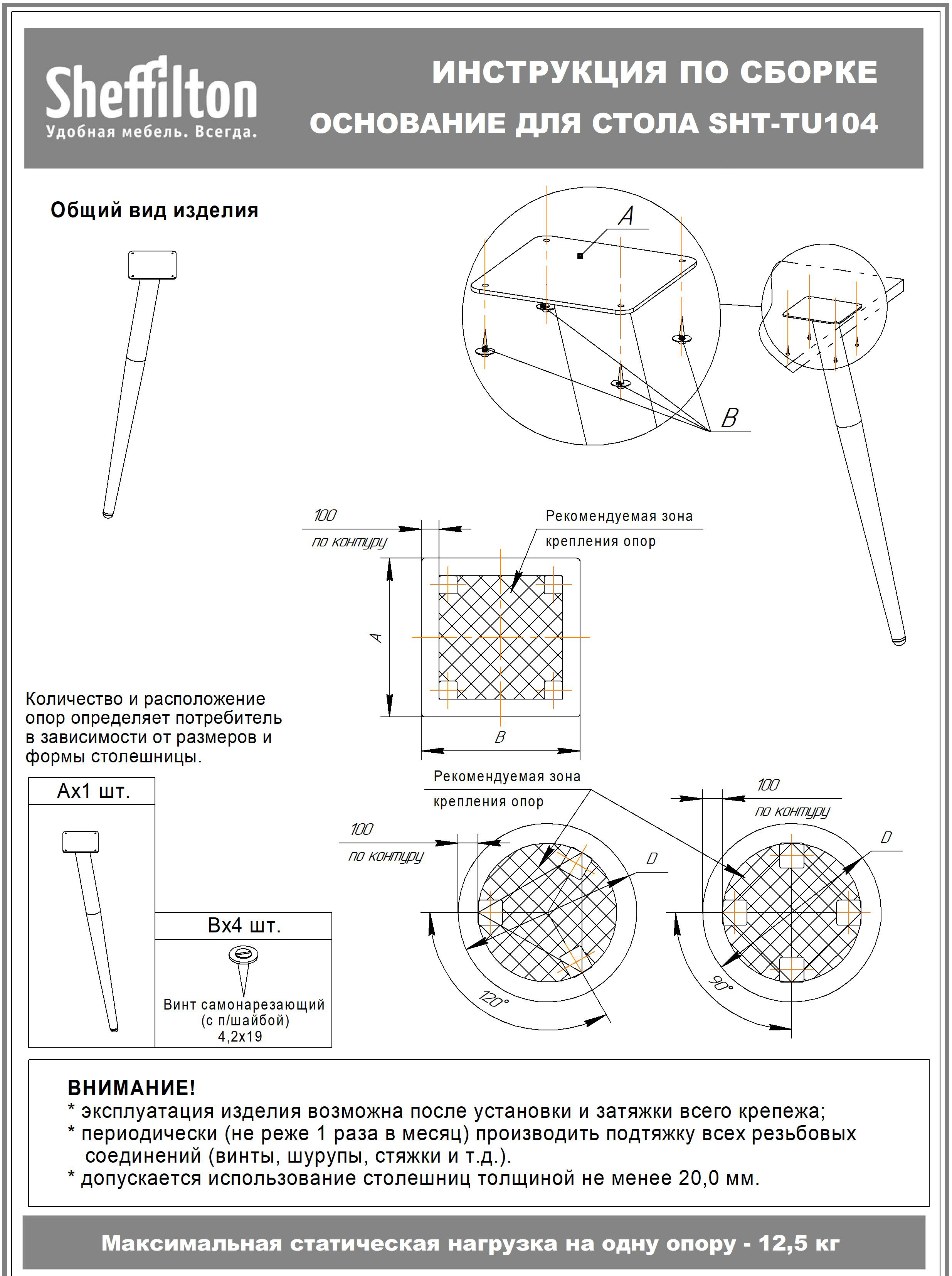 Максимальная нагрузка на одну опору 12,5 кг.