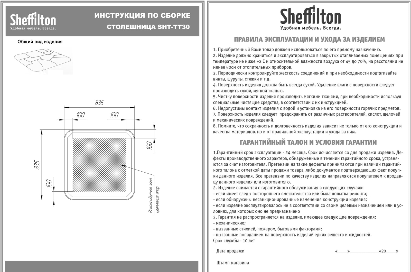Столешница выполнена из полипропилена с армирующими добавками, благодаря которым повышается жесткость и надежность. Изделие устойчиво к ударным воздействиям, негативным воздействиям окружающей среды и появлению царапин.