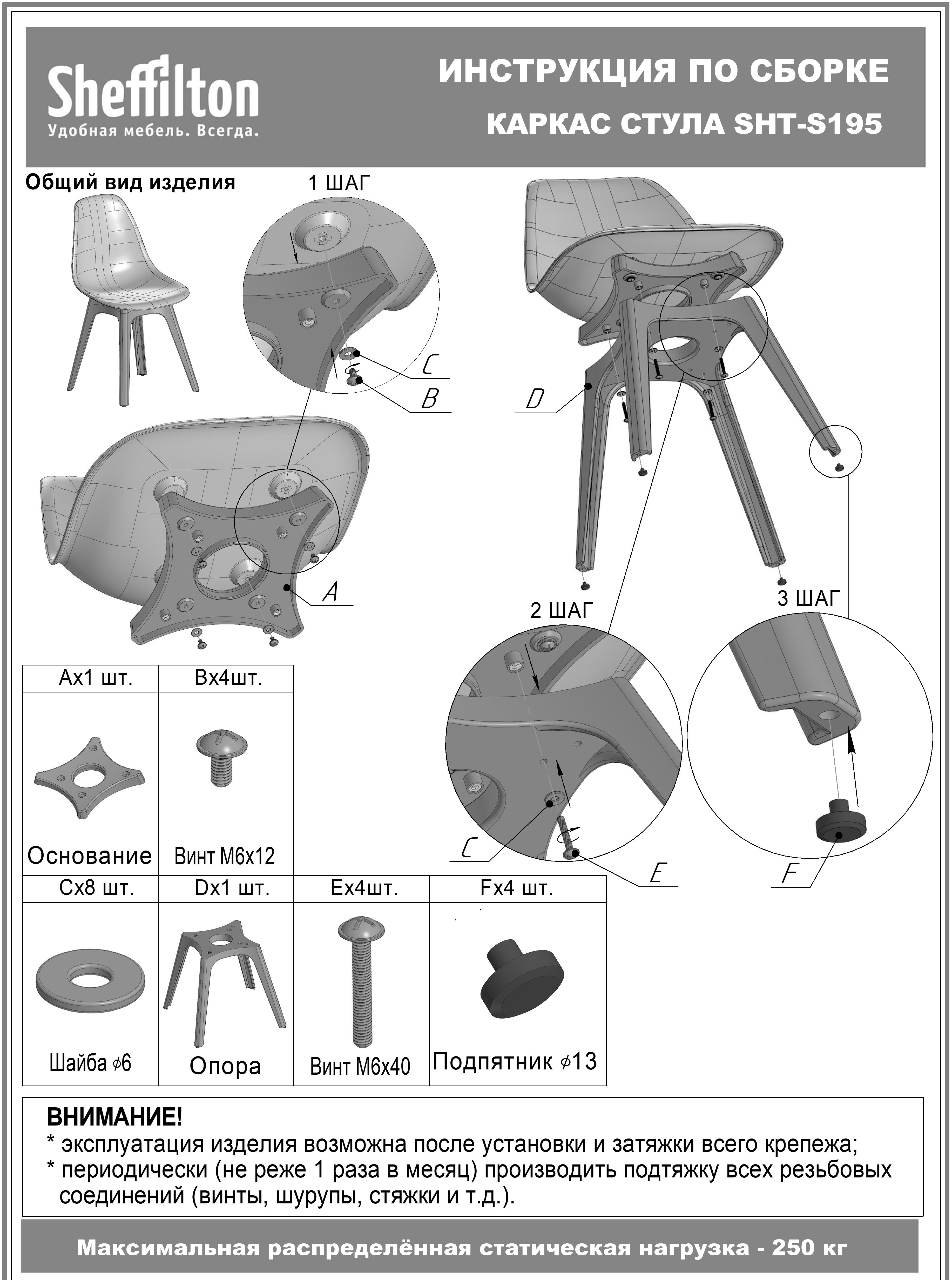 Максимальная статическая нагрузка на каркас – 250 кг.
